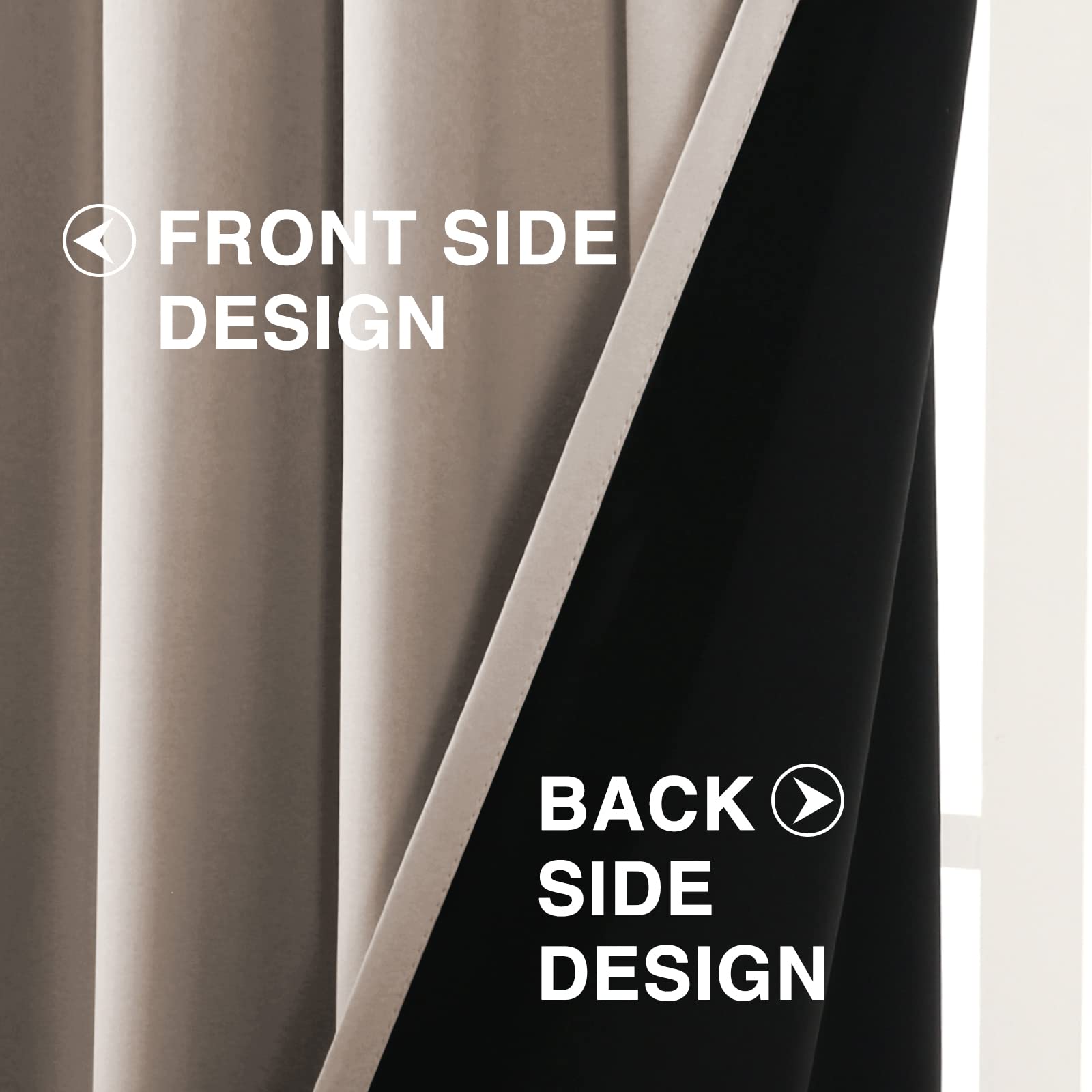100% Blackout: The black fabric on the back can absorb the sunlight completely, no light will pass through the curtains.
